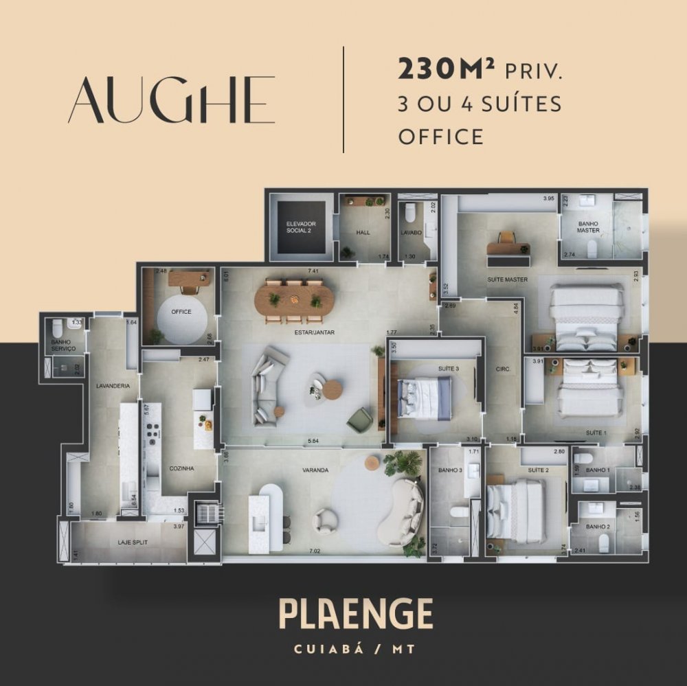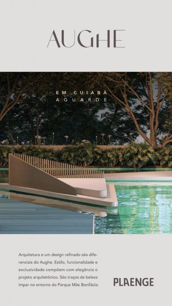 A Plaenge tem a honra de apresentar o AUGHE, um projeto extraordinário que redefine os padrões de elegância e exclusividade em Cuiabá. Com uma arquitetura moderna e atemporal, este empreendimento surpreendente é um convite para uma vida extraordinária ao lado do magnífico Parque Mãe Bonifácia.