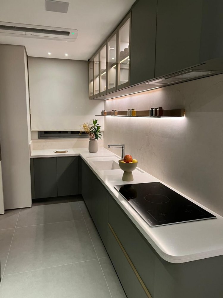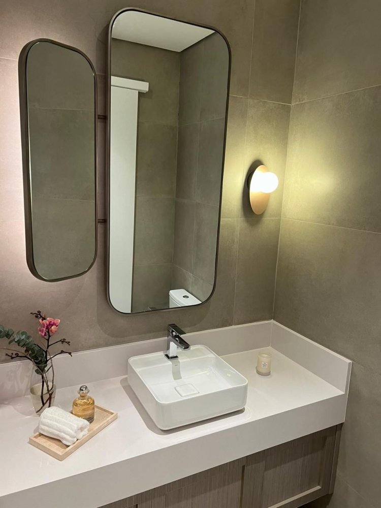 Acabamentos Premium: Bancadas em quartzo sintético, porcelanato em grandes formatos, persianas elétricas, e muito mais, para um toque de luxo em cada detalhe.