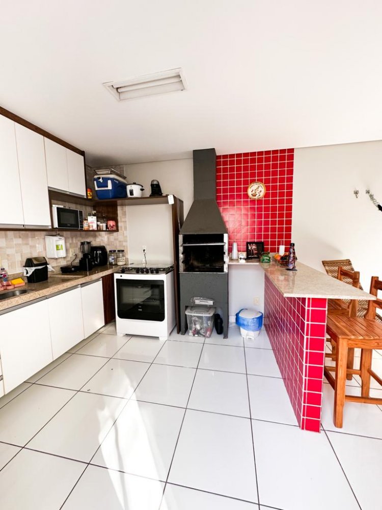 - Cozinha Gourmet com churrasqueira, armários e bancada;