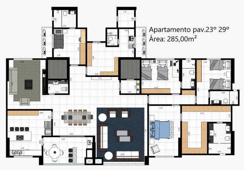 - 04 unidades intermediárias, tipo penthouse, com 285m²;