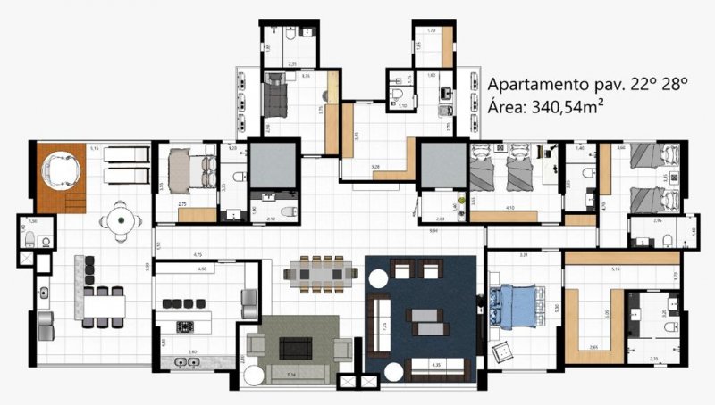 - 04 unidades intermediárias, tipo penthouse, com 340,59m²;
