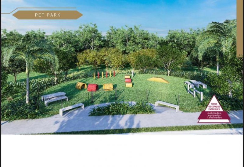 O condomínio horizontal conta 10 quadras e 294 unidades de terreno que são de 250m² à 360m², conta com uma área de lazer completa que serão entregues decorados e equipados: