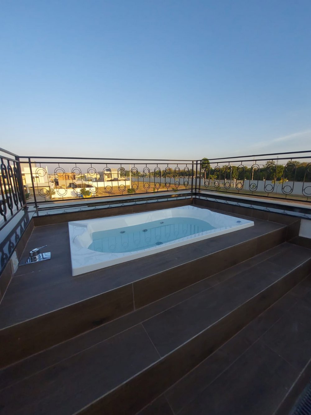 • Banheira na sacada, com hidromassagem e água aquecida