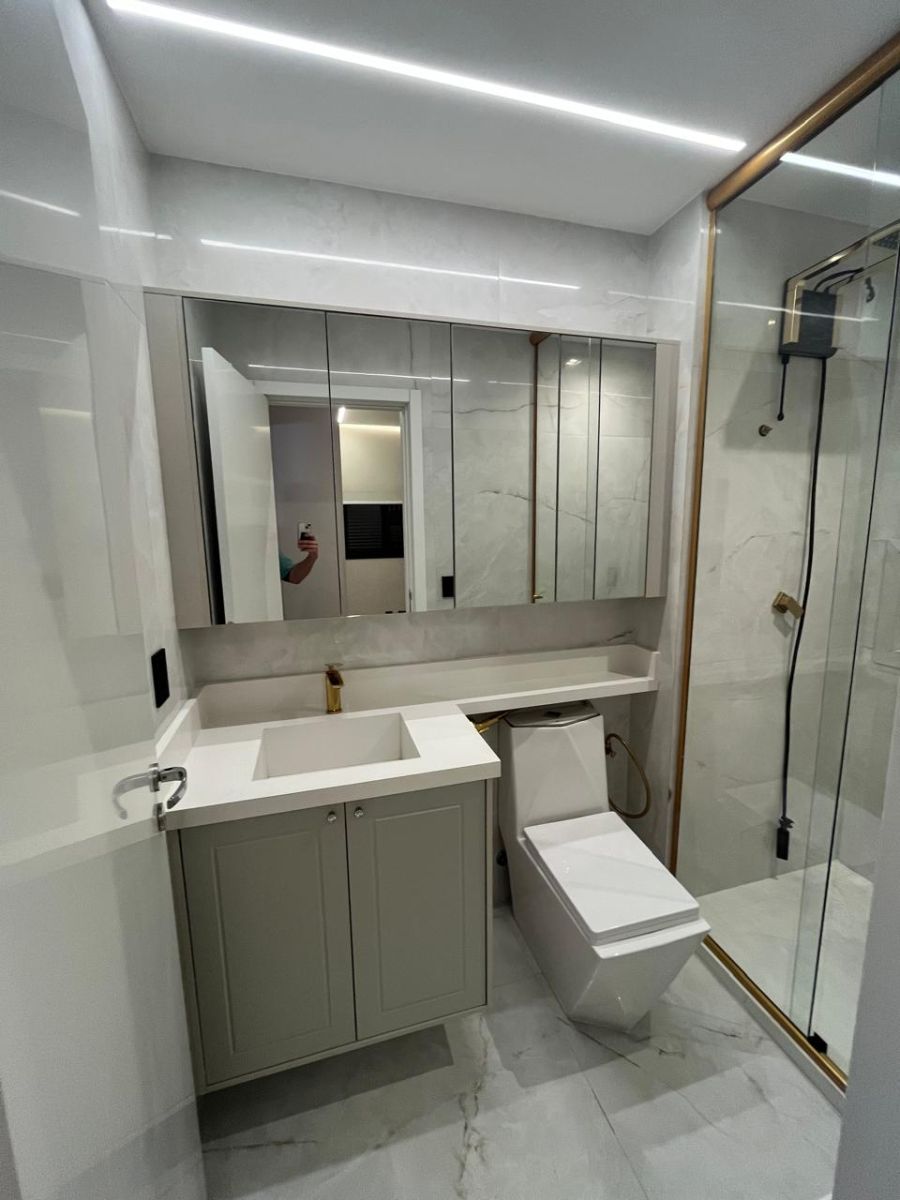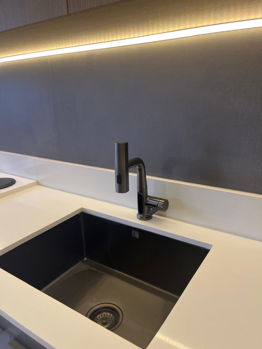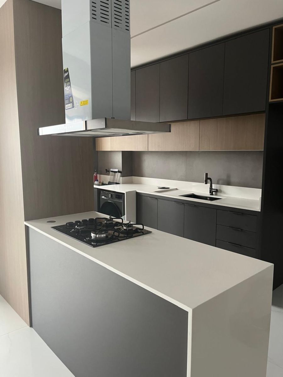 • Piso porcelanato 1x1 na sala, sacada e cozinha;