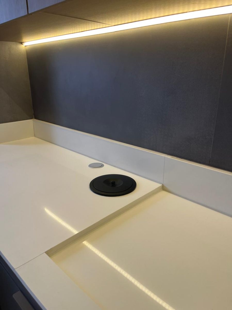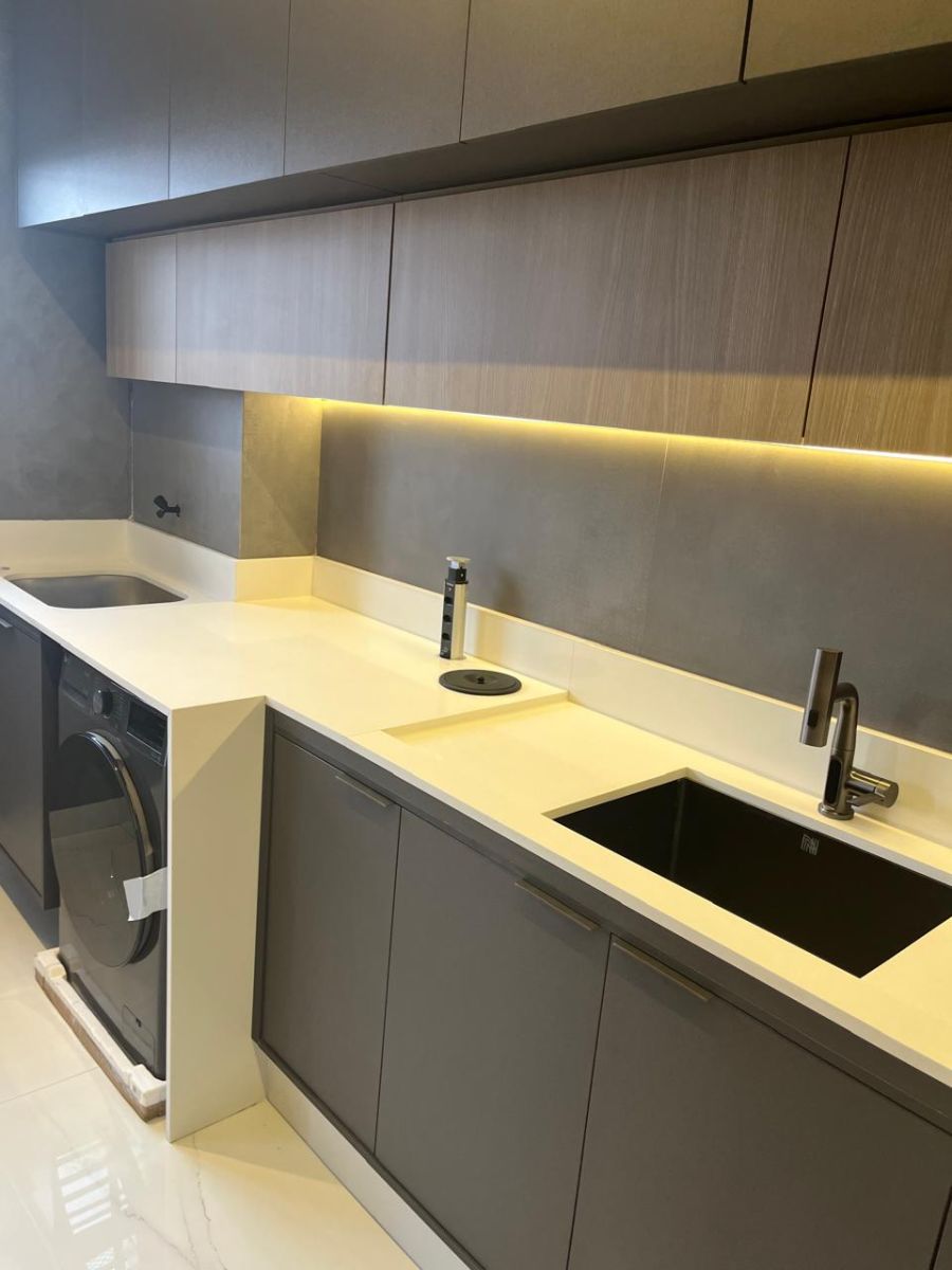 • Bancadas em quartzo branco (cozinha, quartos e banheiros);