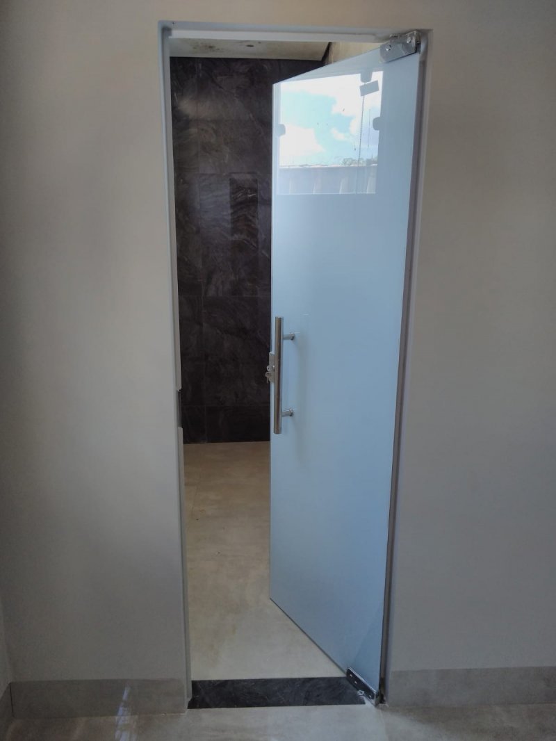 Portas dos banheiros de vidro;